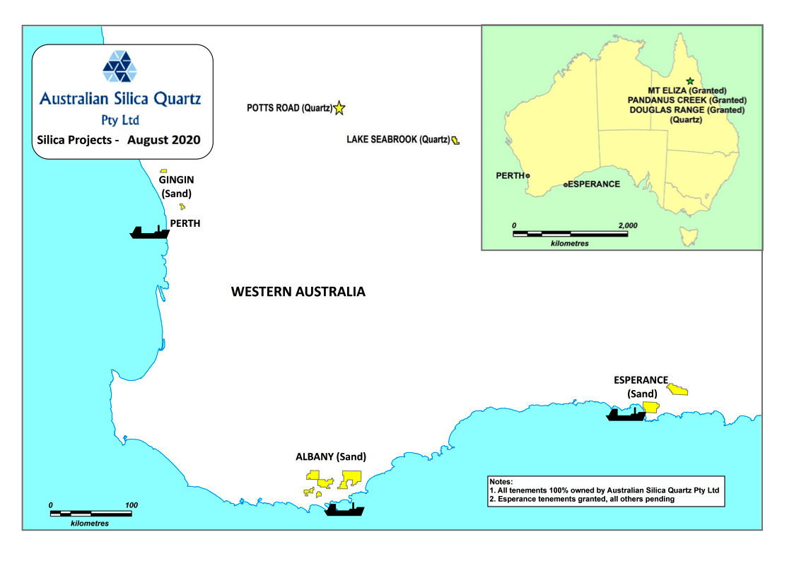 ASQ has high grade silica sand projects in two areas; the Gingin Silica Sand Project located north of Perth and 80km north east of Fremantle / Kwinana Port and the Albany Silica Sand Project currently covering an area of 810km2 within 10-70km of the Port of Albany. For further details pf the two projects please click on the links below.
